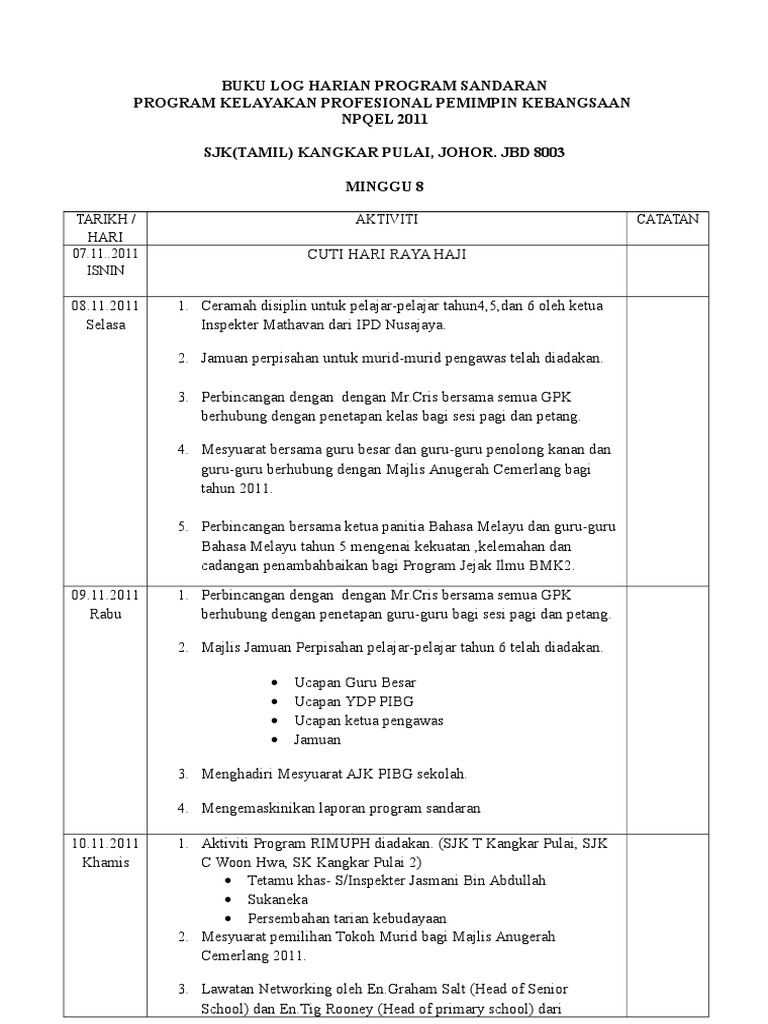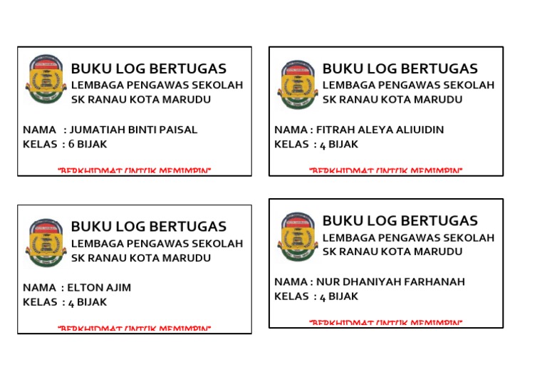 Muka Depan Buku Log Kehadiran Bertugas Pengawas Pss 2019 Pdf