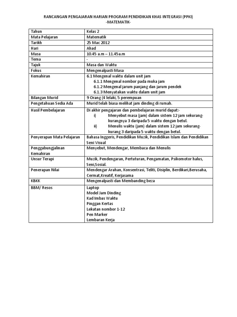 Di dalam perhatian peribadi saya perbandingan dengan anak anak di California ianya jauh berbeza tentang IQ dan boleh saya katakan 6 tahun kebelakang. CONTOH INSTRUMEN MASA DAN WAKTU TAHUN 1. RPH TAHUN 2.